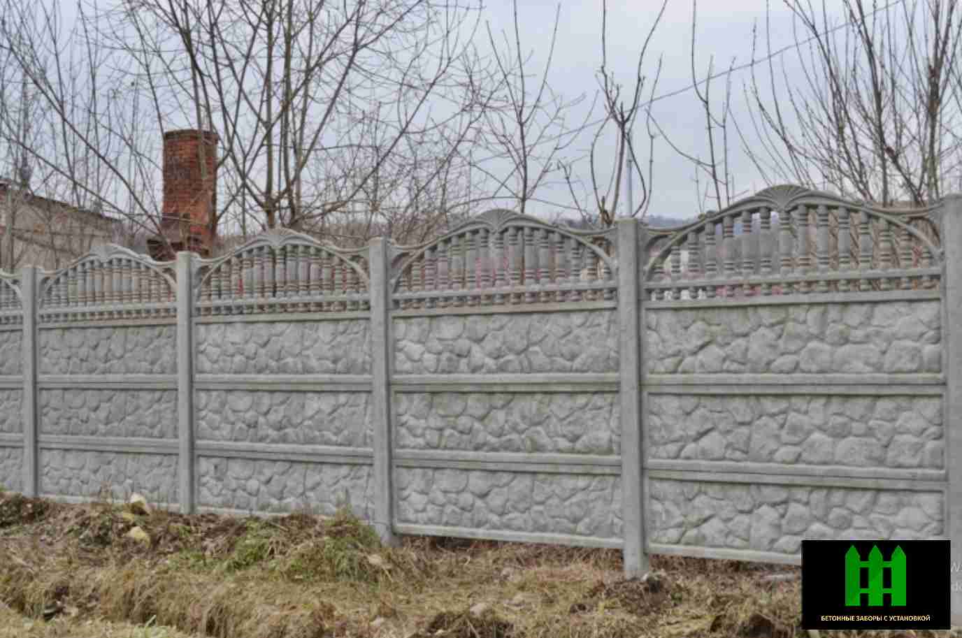 Бетонный забор с установкой